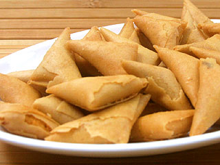 Samosa adalah sumpia berbentuk segitiga. Ada yang berisi udang atau udang ditambah keju. Didalamnya juga diberi bumbu sehingga rasanya sangat gurih dan lezat.